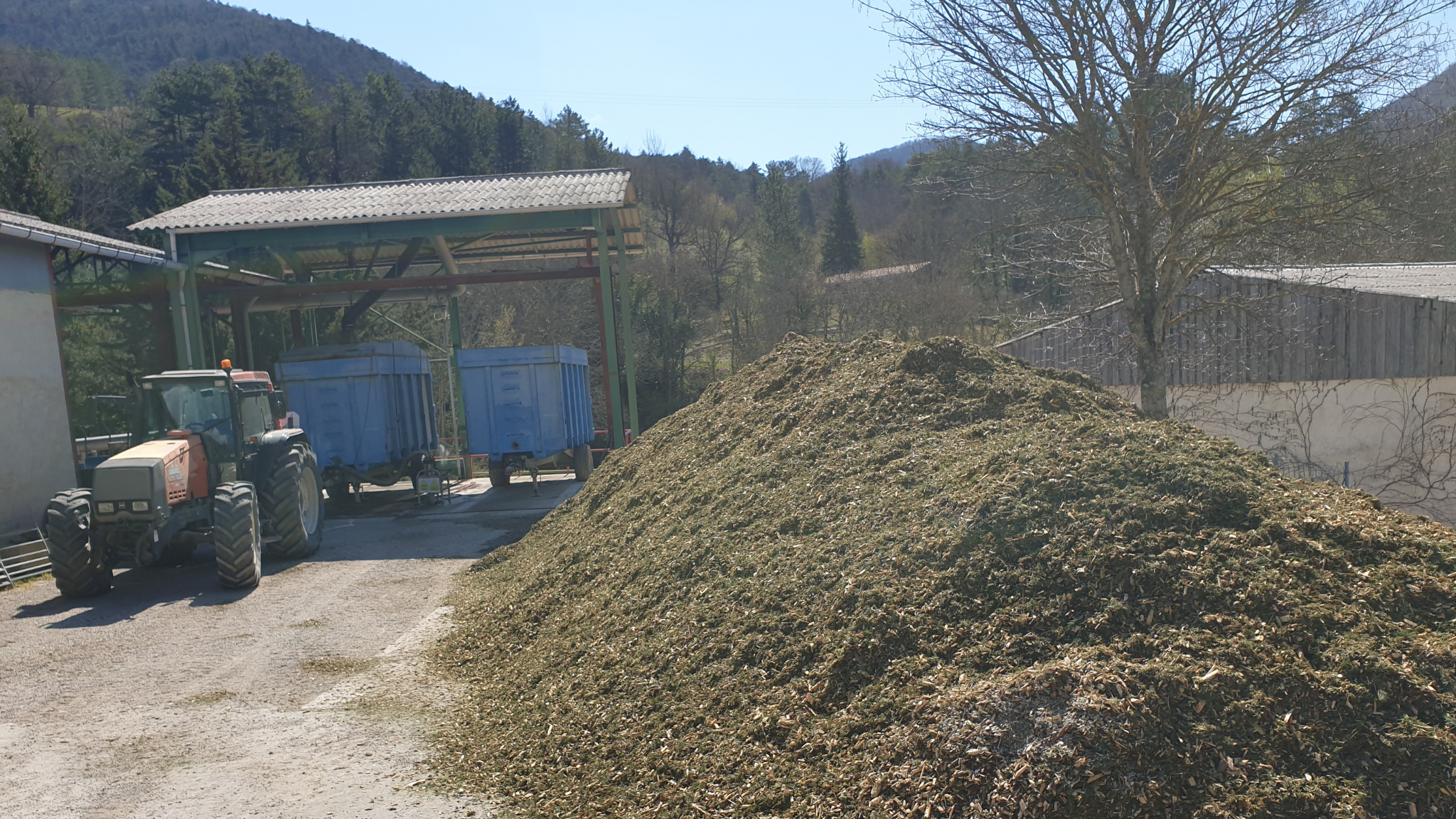 Chez Nicolas et Mareb, pas de cultures dédiées : toute la matière première provient des déchets rémanents de coupe forestière. Lors des exploitations, les houppiers (branches, rameaux et aiguilles) sont récupérés pour être valorisés. Cette matière, appelée broyat aromatique, est ensuite distillée directement sur place.