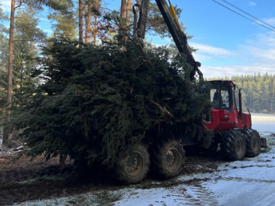 Grâce à un système de mécanisation optimisée, les engins forestiers utilisés pour la coupe servent aussi à collecter les houppiers, réduisant ainsi les trajets et la consommation d’énergie.