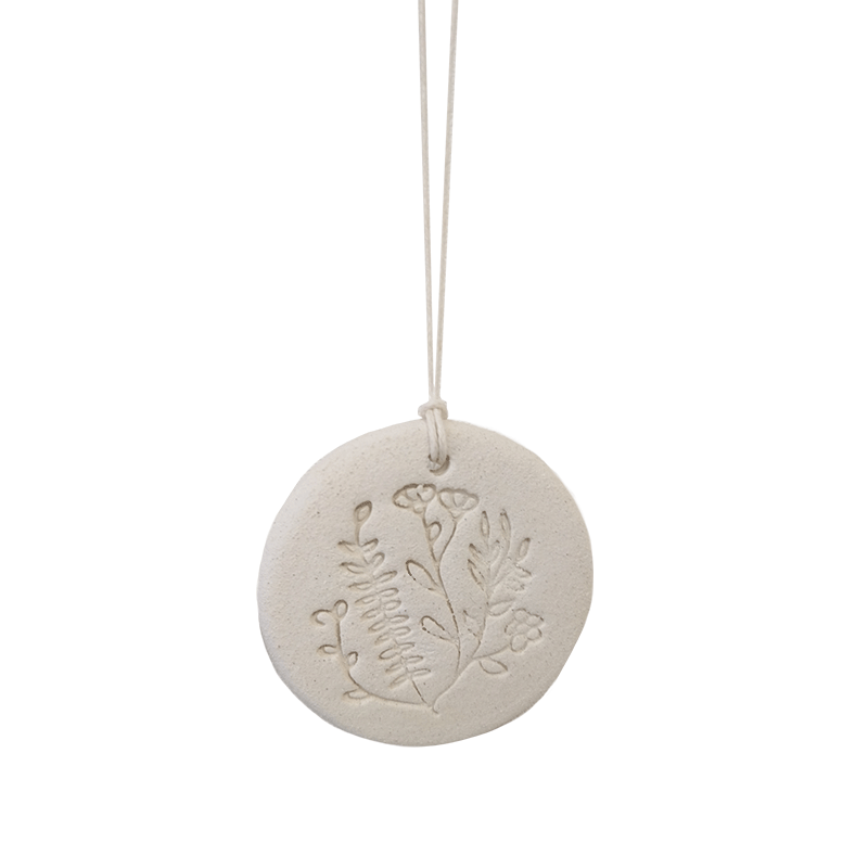 En grès mat, ce médaillon a été conçu pour diffusion douce et naturelle des huiles essentielles. La céramique est cuite de manière à rester volontairement poreuse : elle absorbe quelques gouttes d'huile essentielle et libère progressivement leurs arômes dans l'air ambiant, sans nécessiter de chaleur.