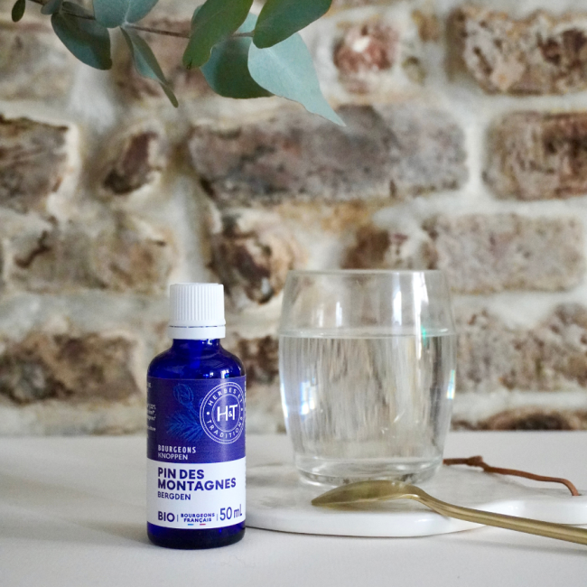 Ingrédients : Eau, alcool* (32% vol), humectant : glycérol*, bourgeons de Pin des montagnes* (Pinus mugo Turra)